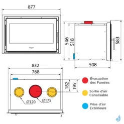 Insert à Bois Hergom C-16/80 Puissance 8kW Sortie Fumée Supérieure