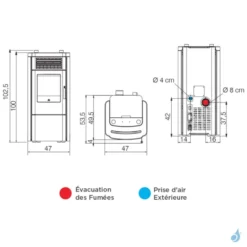 Poêle à Granulés Canalisable Edilkamin Blade 12++ Evo Puissance 12.1kW Sortie Fumée Supérieure Ø8 Cm
