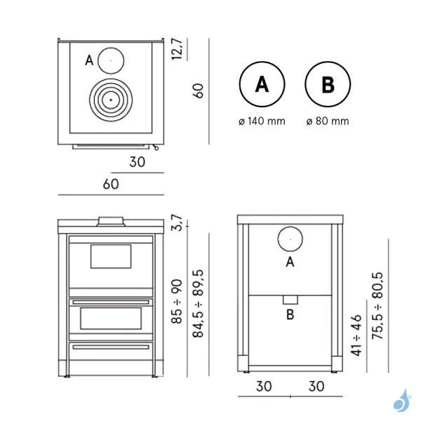 Mesures L x H x P : 60 x 60 x 85/90 cm