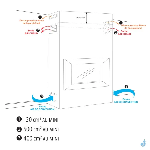 Entrée basse : Selon notice fabriquant avec un minimum de passage libre de 400 cm2