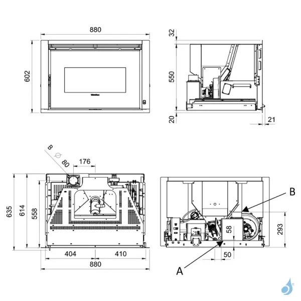 Dimensions (L-H-P) : 814 x 550 x 636 mm