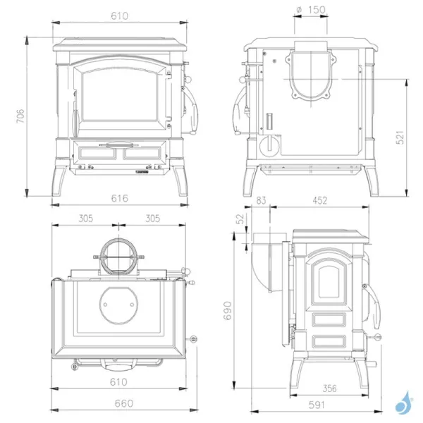 Dim. Bouche feu (L-H) : 380 x 225 mm