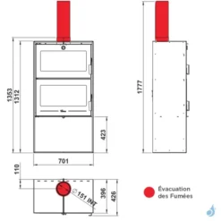 Sortie des fumées : Ø 150 mm