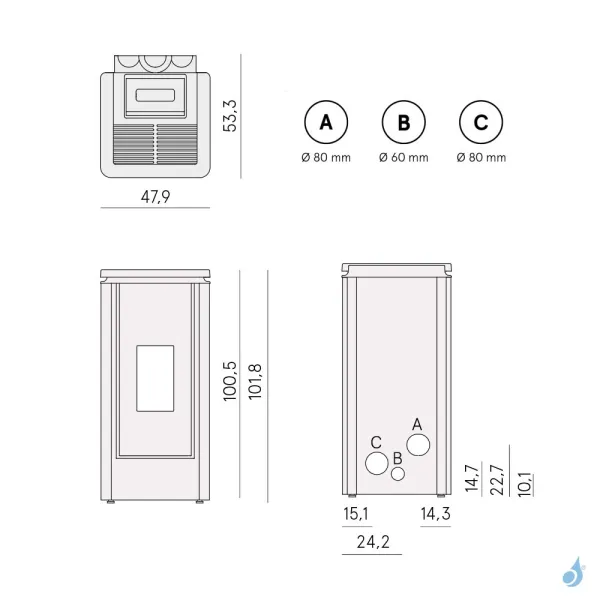 les sorties des fumées peuvent être postérieures, supérieures, supérieures-concentriques