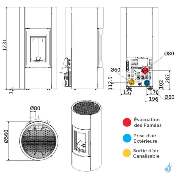 Sortie des fumées Ø 8cm par l’arrière