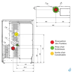 Un seul conduit pour la sortie des fumées et l’arrivée d’air de combustion.