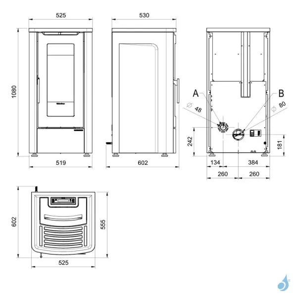 Dimensions (L-H-P) : 525 x 1080 x 602 mm